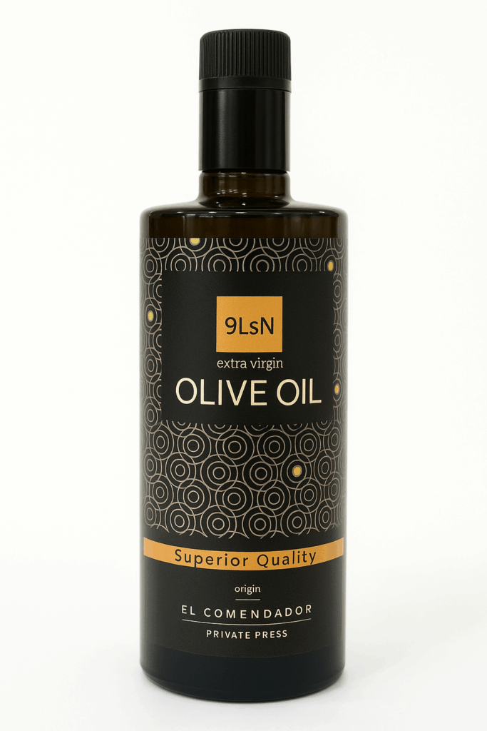 9LsN Olivenolie er udvundet af olivensorten Hojiblanca. Olivenfrugten er håndplukket fra udvalgte oliventræer – og derefter finsorteret og koldpresset få timer efter de er plukket. Størstedelen af træerne er over 100 år gamle og de lever i 500 meters højde tæt op ad den fredede naturpark, som er fuld af vild flora – pinjetræer, rosmarin, lavendel og timian.